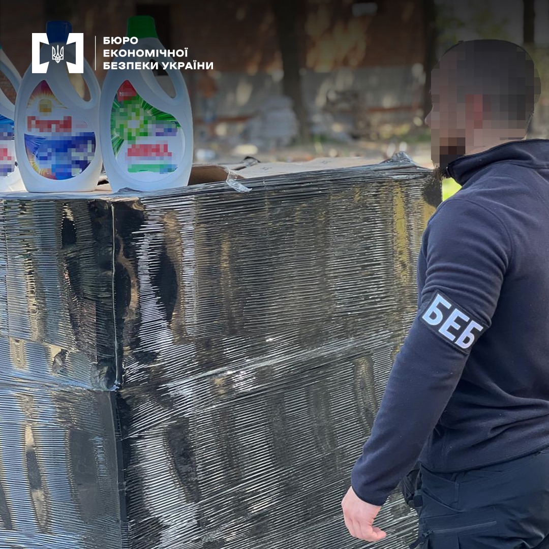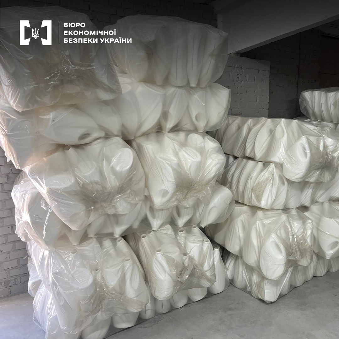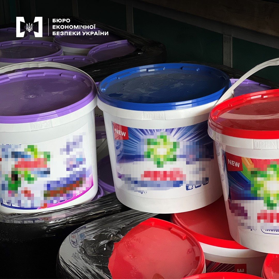 Під час обшуків у складському приміщенні співробітники БЕБ виявили та вилучили близько 17 тонн готової продукції, обладнання та сировину для виготовлення пральних засобів, а також пакувальну тару і етикетки відомих торгових марок.