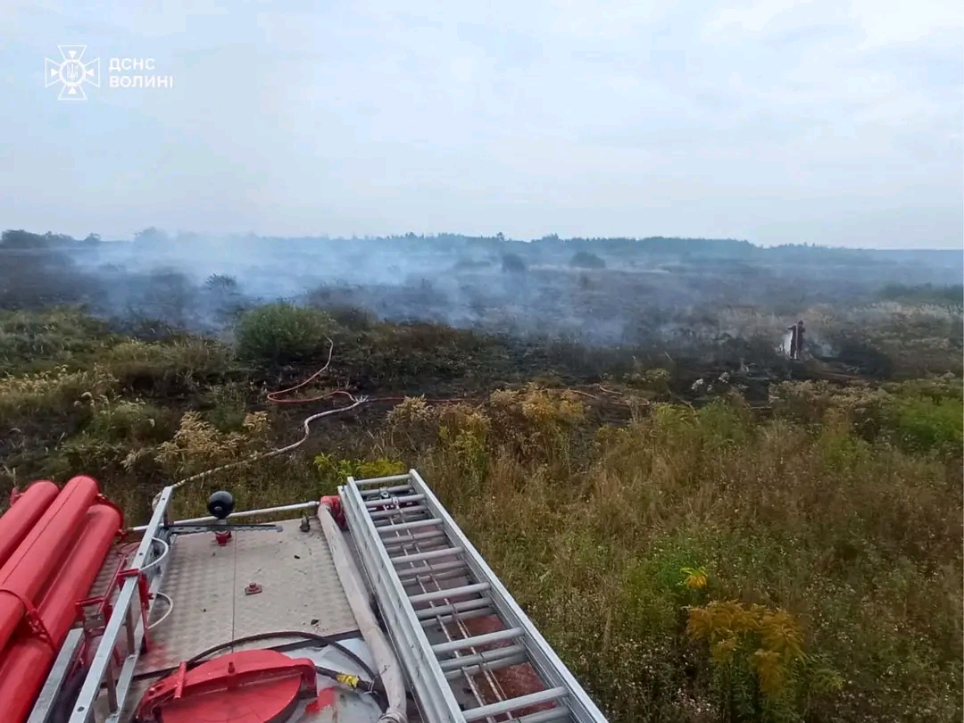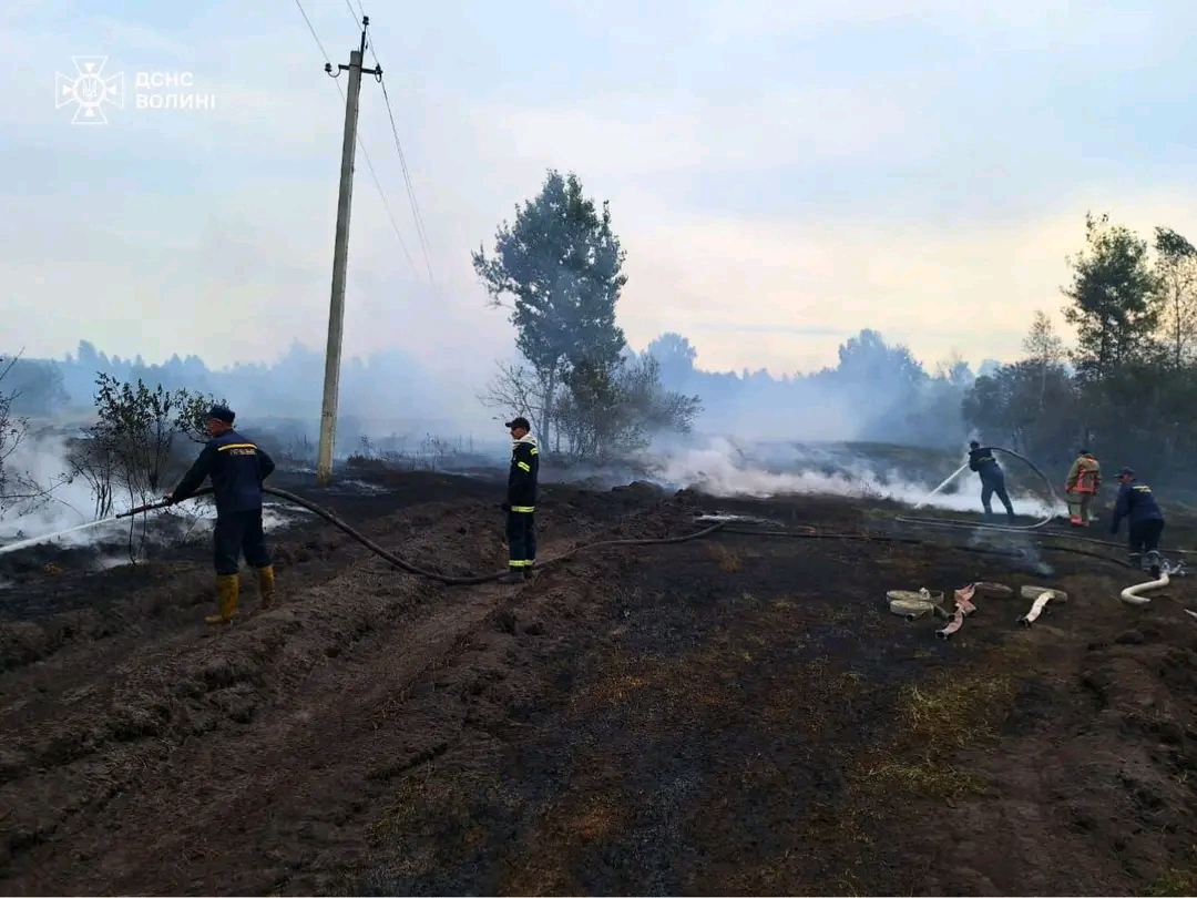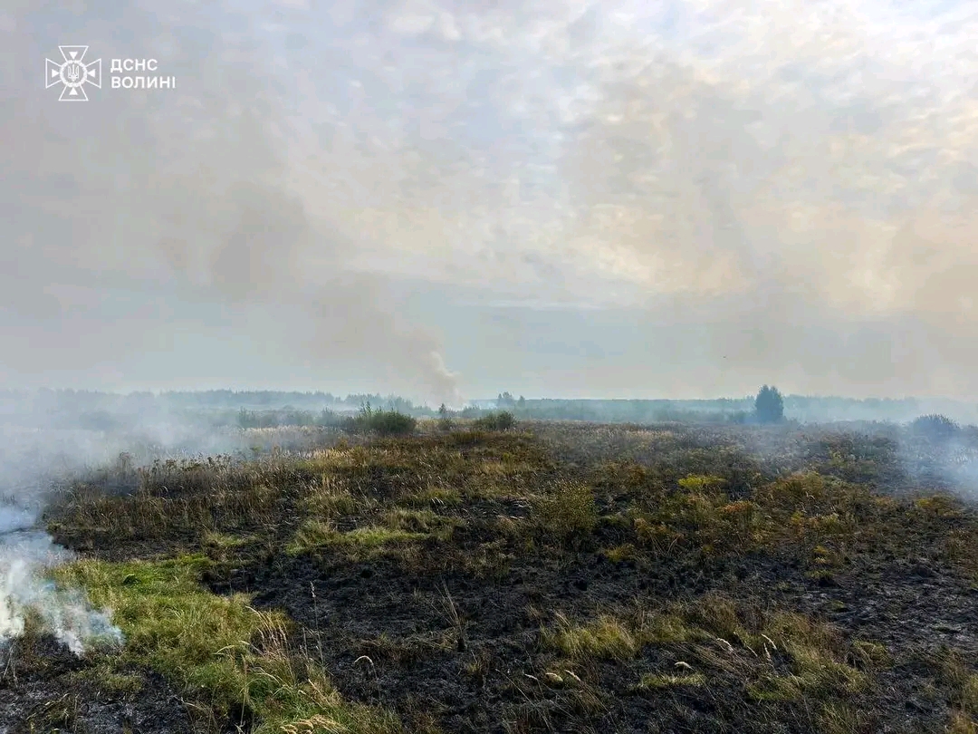 На Ковельщині горіння на торфополі зафіксоване за межами с.Гупали Головненської громади. Пожежа охопила угіддя на площі 1,5 га.