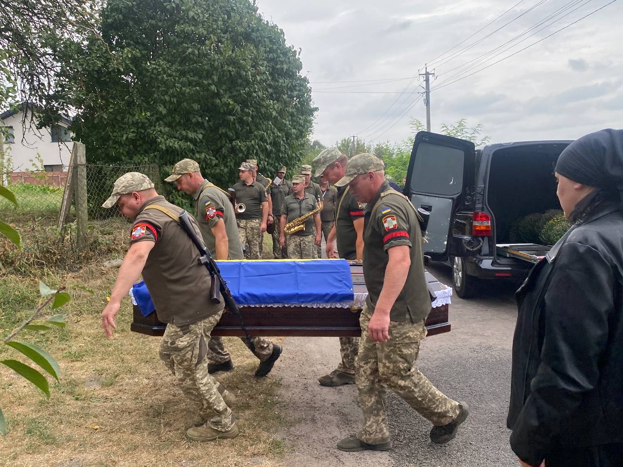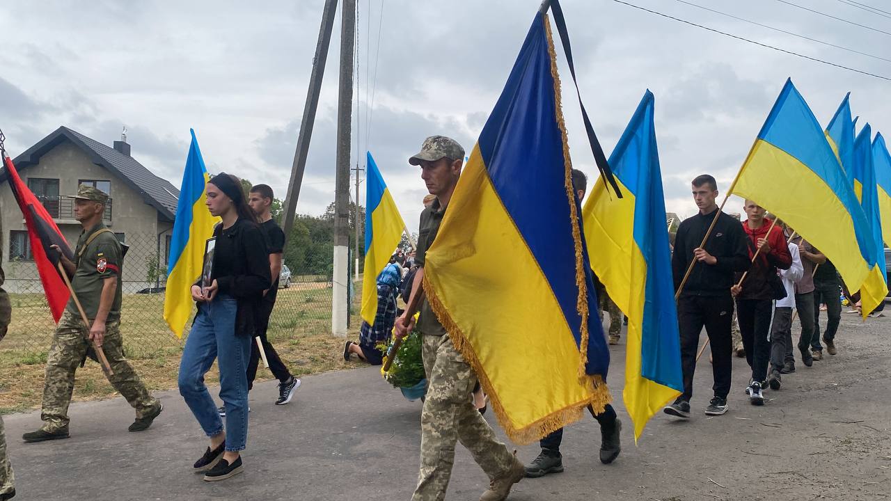 Траурний кортеж Захисника, віддаючи шану, схилившись на коліна, зустрічали жителі сіл Дерно, Хром'яків, Дідичі.