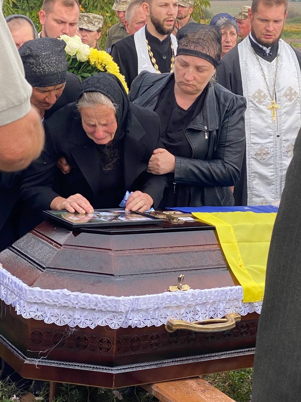 Квітами встелили односельці дорогу, зустрічаючи траурну процесію у селі Новокотів Підгайцівської громади, де проживав Леонід Сосницький та де відважний воїн знайшов вічний спочинок на місцевому кладовищі.