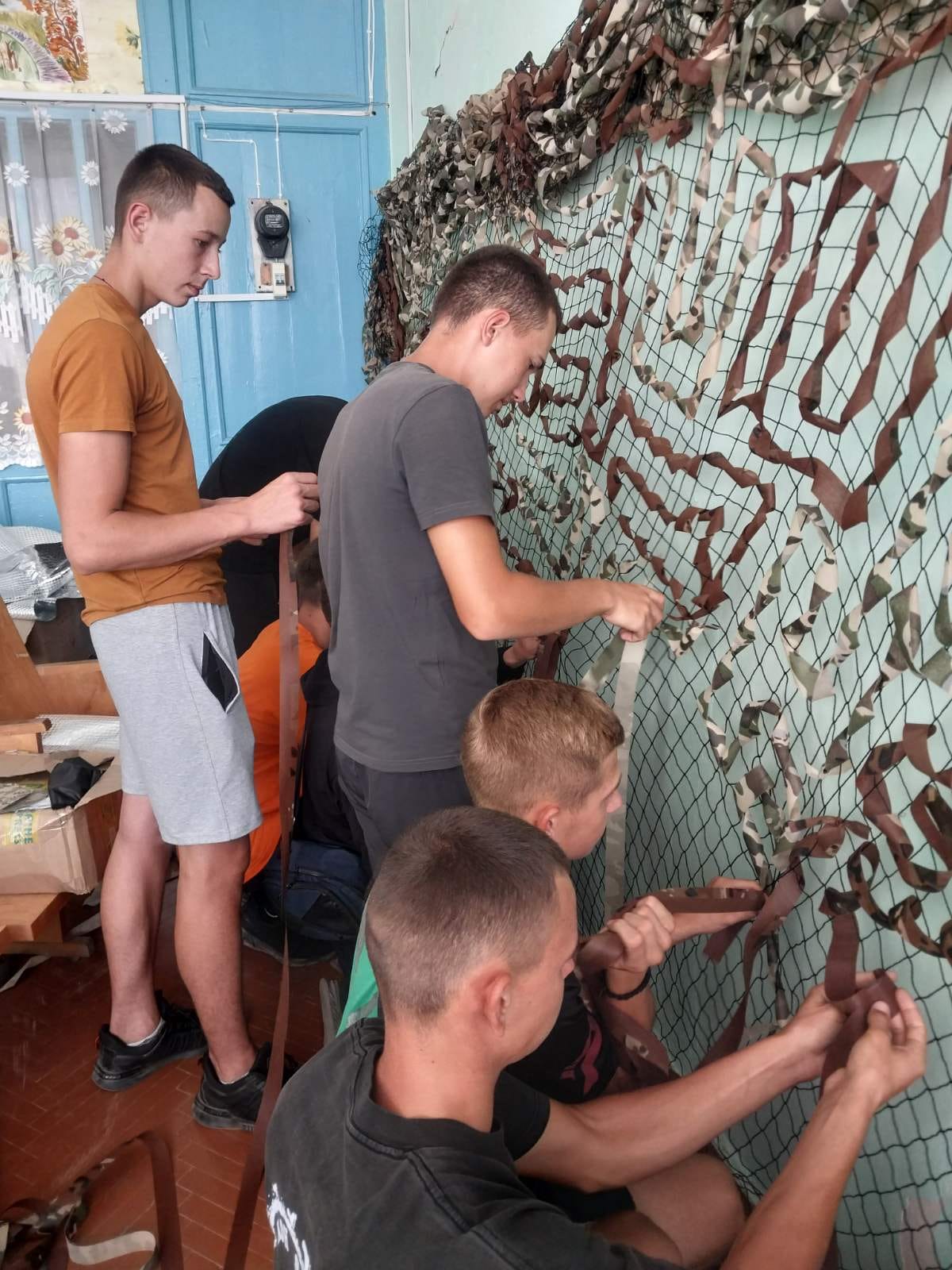 Гурток «Волонтер» продовжує активну співпрацю з місцевим волонтерським центром, виготовляючи сітки для камуфляжу військових позицій.