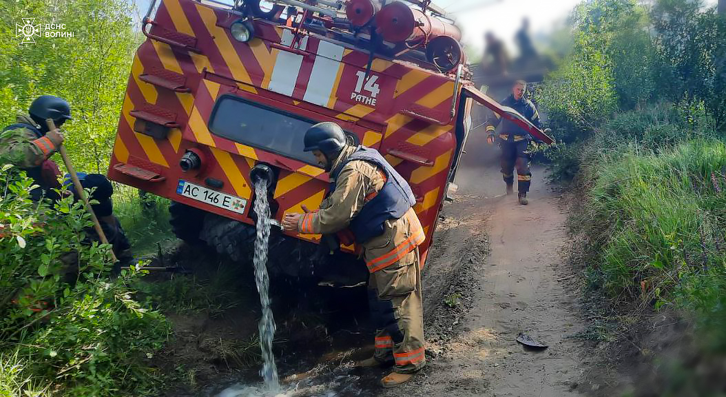 Проклавши рукавну лінію, Вадим Хмарук і Дмитро Дейнека «проливали» тліючі повалені дерева, а попереду рухалася пожежна автоцистерна. Так метр за метром рятувальники просувалися углиб лісу.