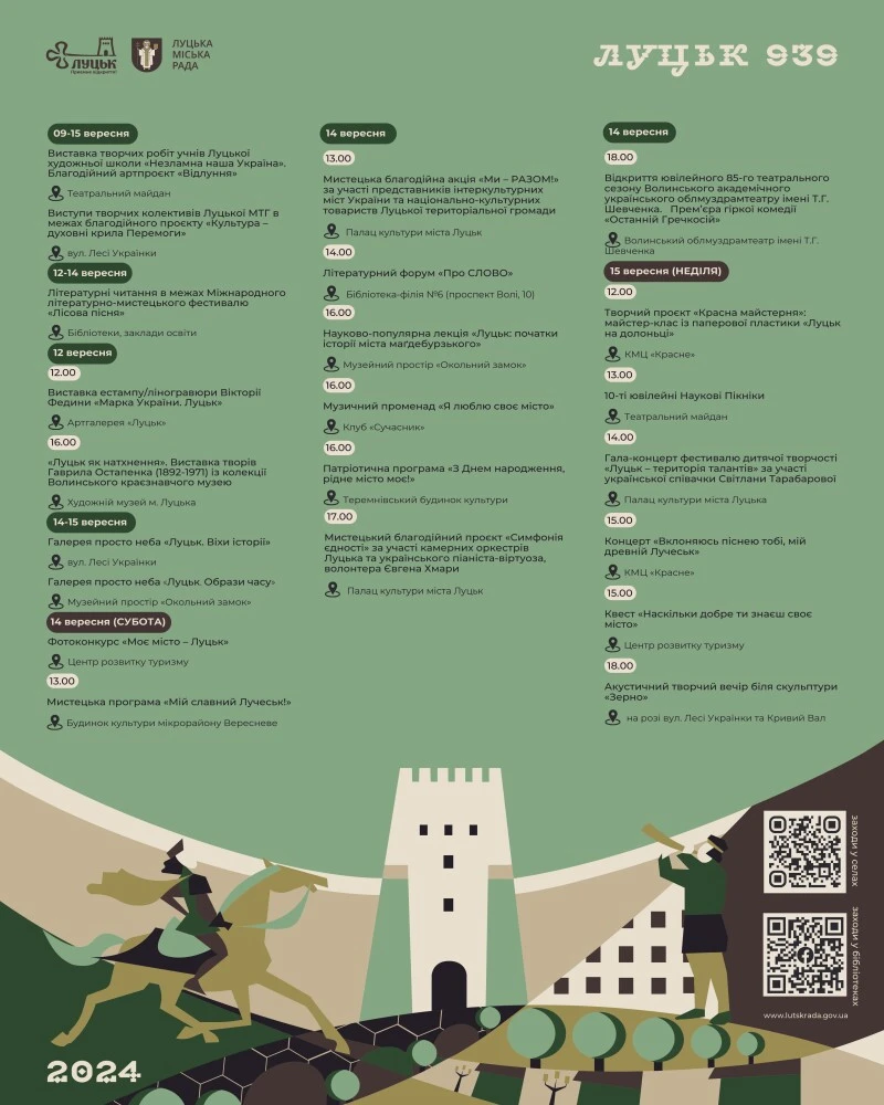 14 та 15 вересня Луцьк відзначає свою 939-ту річницю.