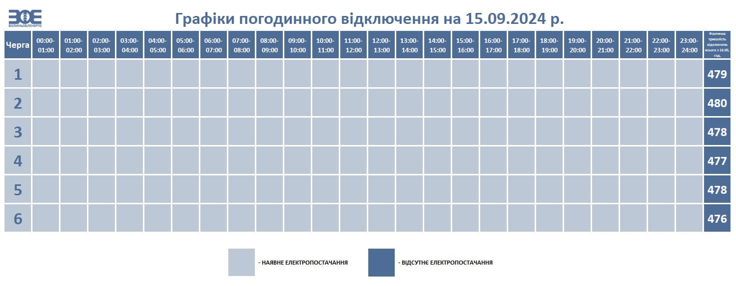 У неділю, 15 вересня, у Волинській області графіки погодинного відключення електроенергії застосовуватись не будуть.