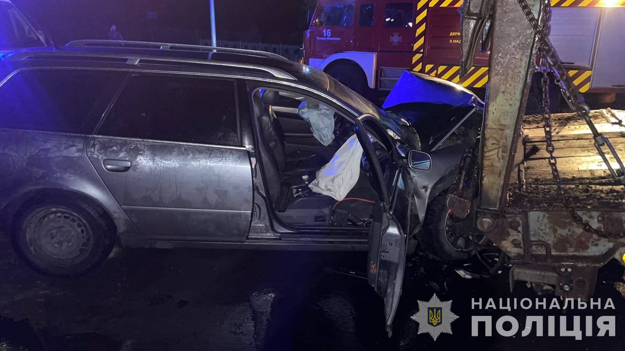 За даними поліції, 24-річний водій автомобіля Audi не впорався з керуванням та врізався в припарковану вантажівку MAN. Пасажир легковика, житель Волині, загинув на місці через отримані травми.