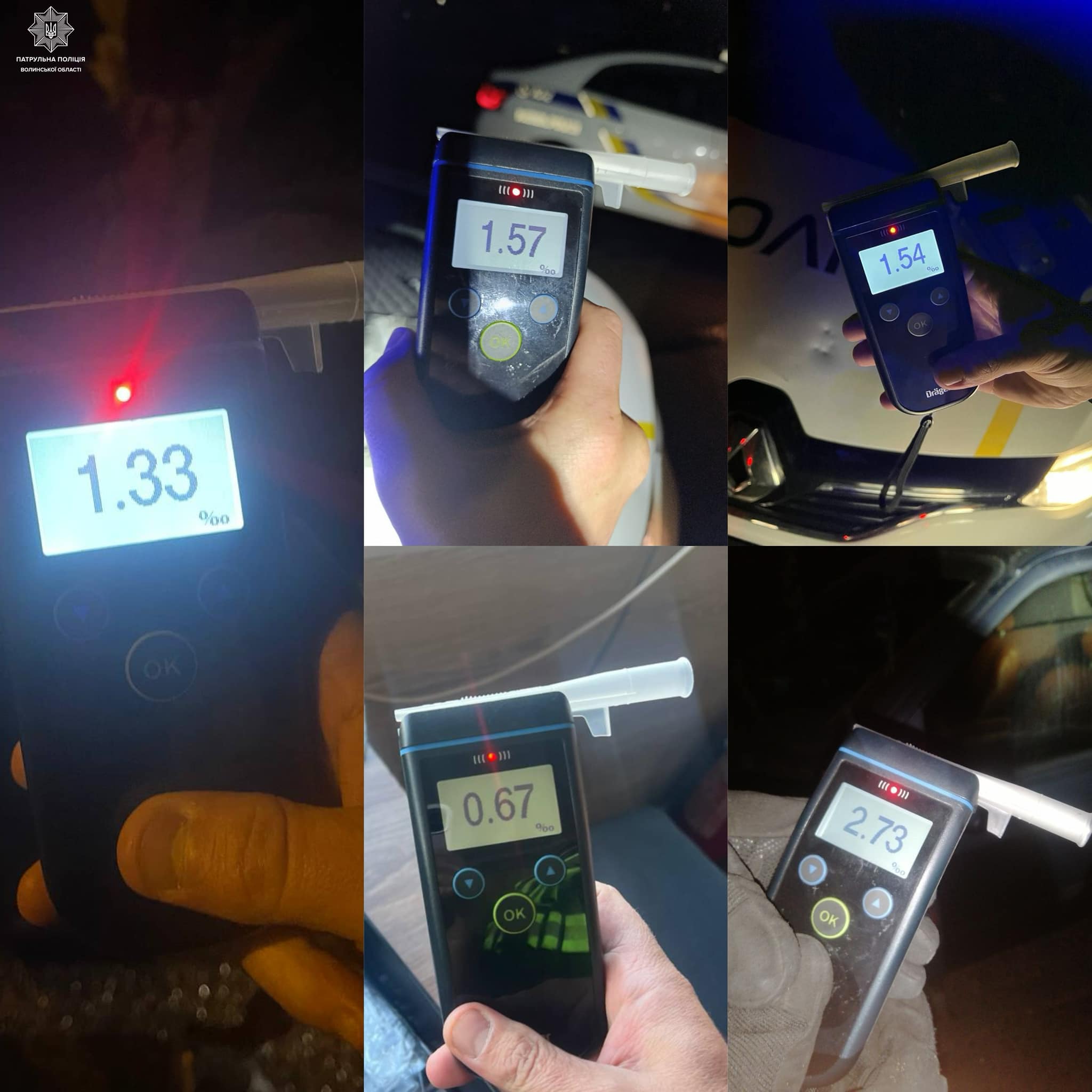 Протягом вихідних днів патрульні поліцейські Волині виявили 7 випадків керування транспортними засобами водіями з ознаками сп'яніння.
