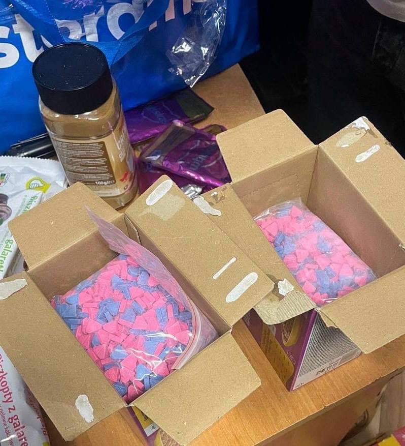 У ході митного огляду з цих коробок вилучили по три поліетиленових зіп-пакети із синіми та рожевими таблетками трикутної форми з маркуванням черепа на них. Про небезпечну знахідку митники негайно сповістили правоохоронців.