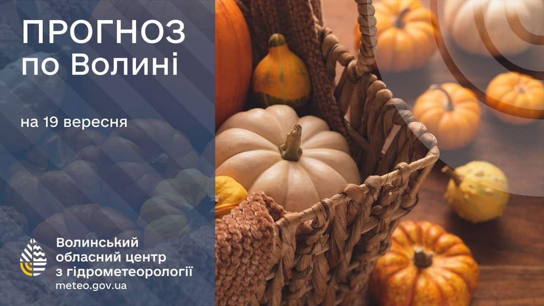 Волинські синоптики повідомили про прогноз погоди на 19 вересня. У Луцьку вдень очікуються 21-23°, а в області - 20-25°.