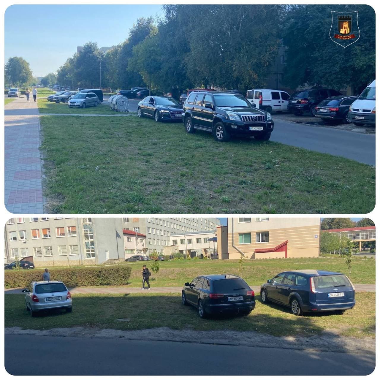 При перевірці інспектор виявив 10 автомобілів, що були припарковані на зеленій зоні, порушуючи п. 15.10 «є» Правил дорожнього руху України. На порушників були складені повідомлення про адміністративне правопорушення.