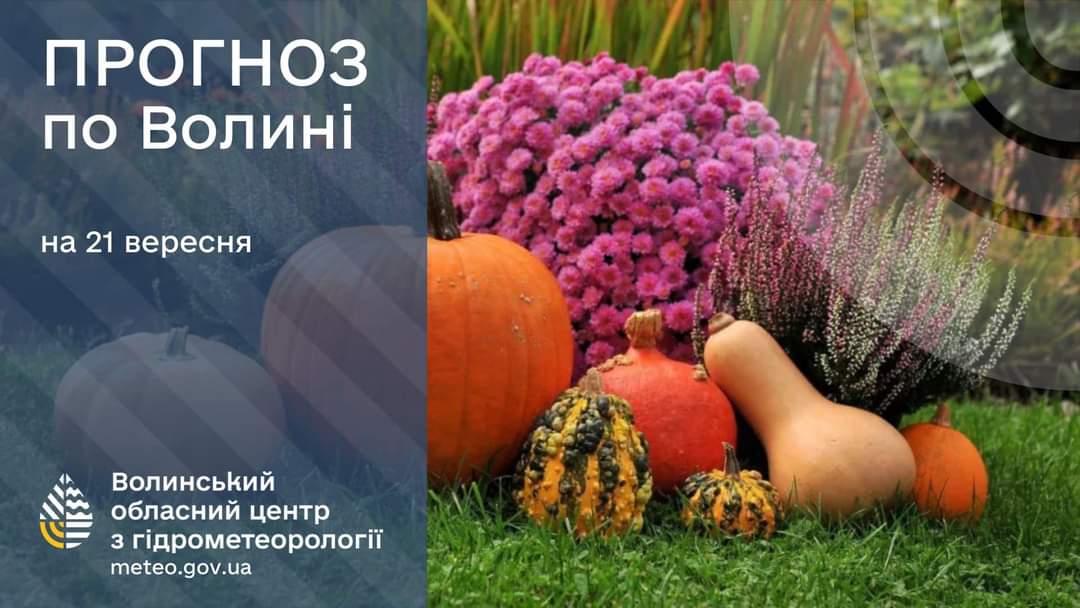 Волинські синоптики повідомили, що 21 вересня у Луцьку та по області буде тепло - вдень 22-24°.