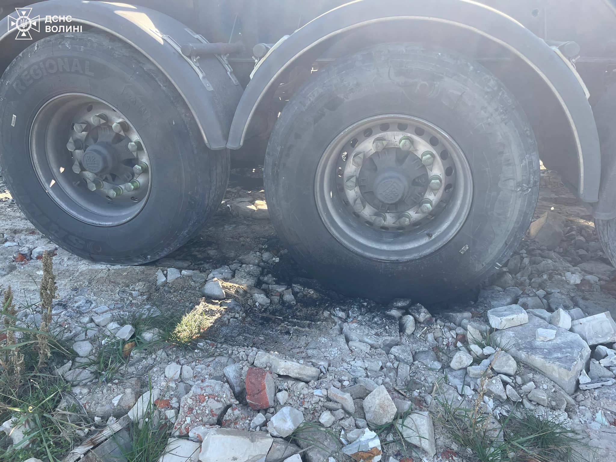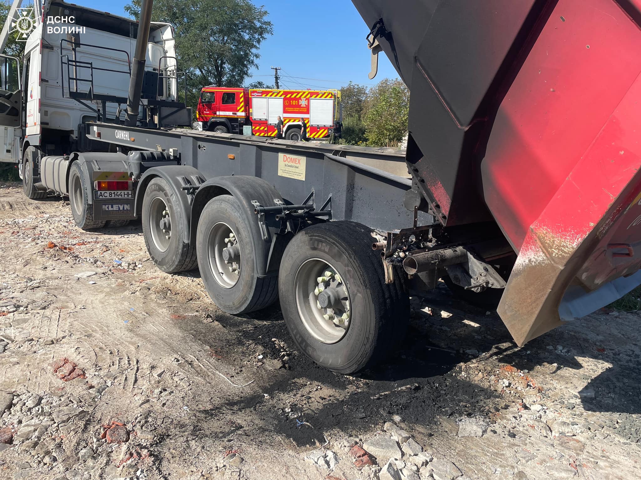 Прибувши на місце, вогнеборці встановили, що водій, вивантажуючи щебінь, зачепив лінію електропередач. Це призвело до загоряння задніх шин автомобіля. Водій помітив пожежу, але не усвідомив причини і вийшов з автомобіля.