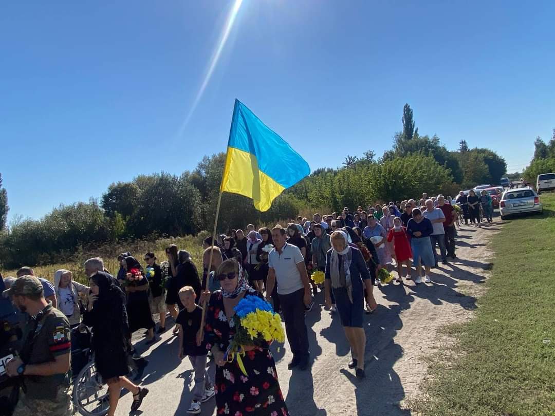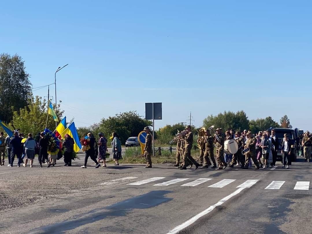 У супроводі військового оркестру людною ходою супроводжували кортеж з тілом Воїна до батьківського дому у селі Новокотів.