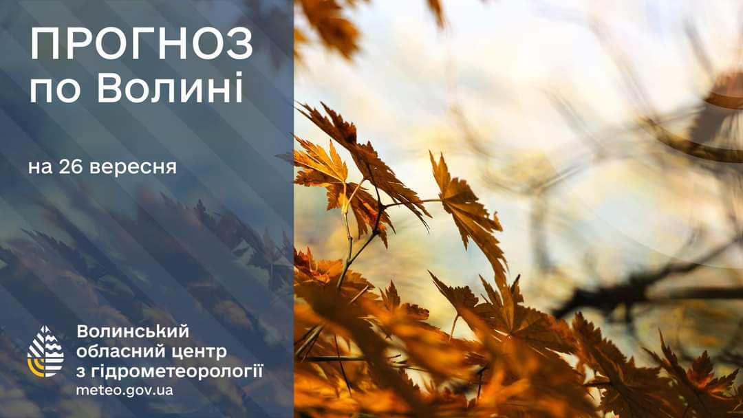 На Волині, 26 вересня, синоптики прогнозують хмарну погоду, короткочасний дощ та часом пориви вітру 15-20 м/с