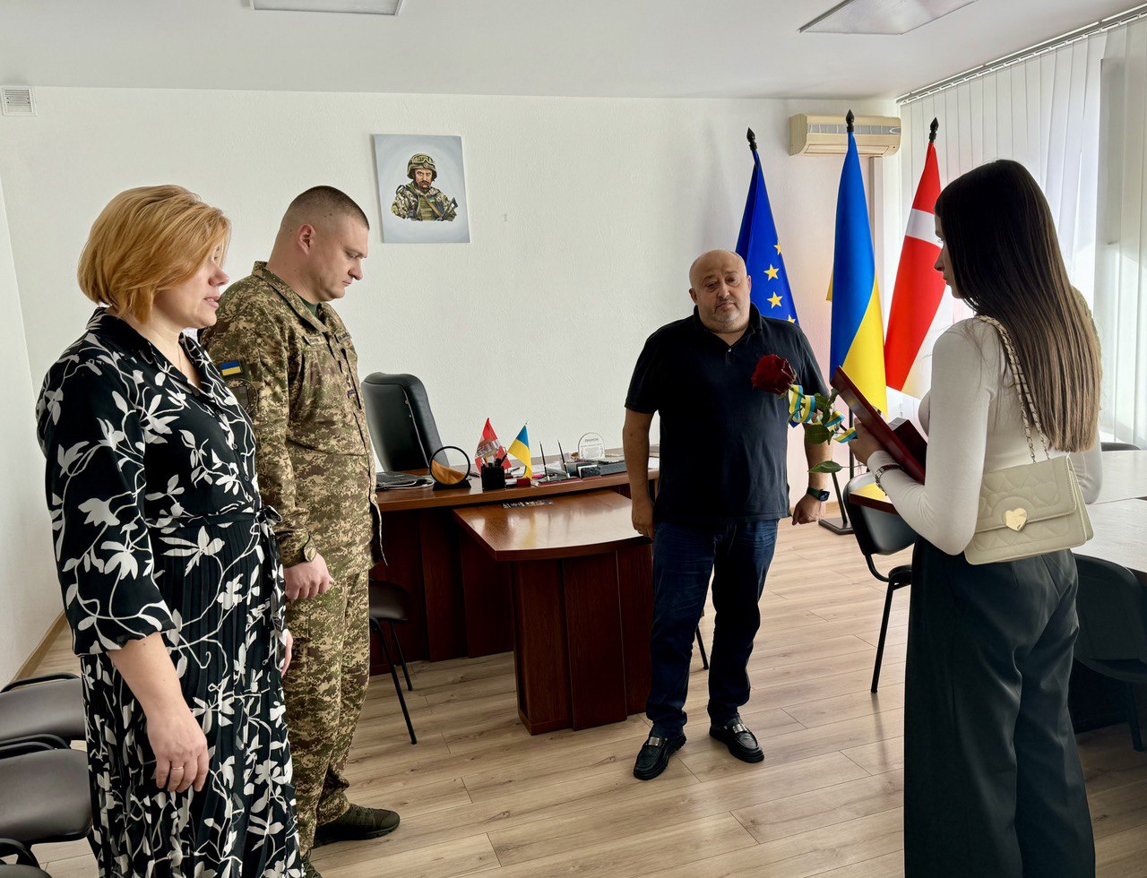 Орден на честь полеглого героя вручили його дружині начальник Луцької районної військової адміністрації Анатолій Костик та командир військової частини 1141 Національної гвардії Володимир Олійник.