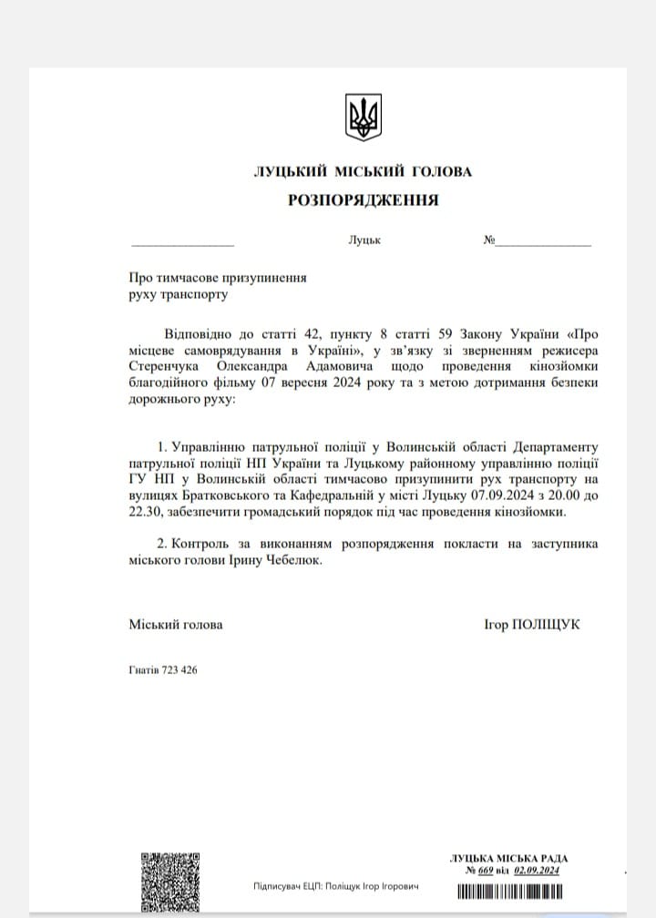У Луцьку 7 вересня з 20:00 до 22:30 буде призупинено рух транспорту на вулицях Братковського та Кафедральній.