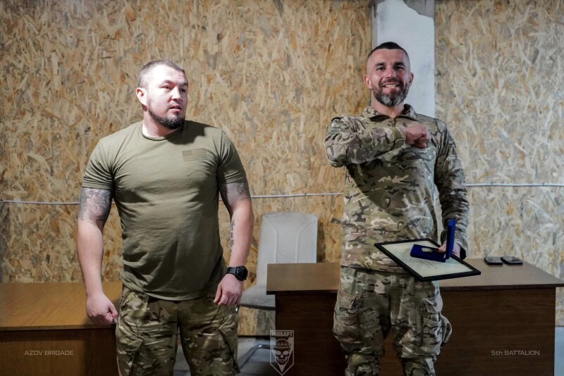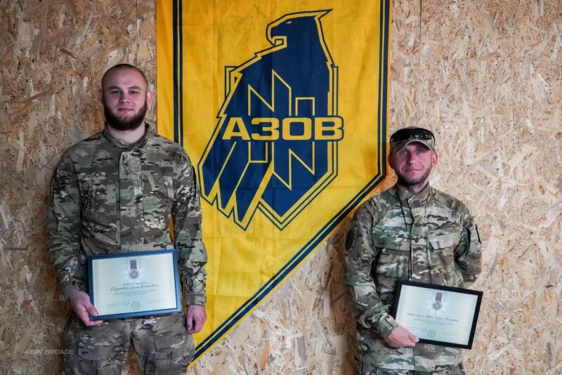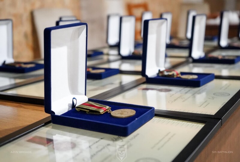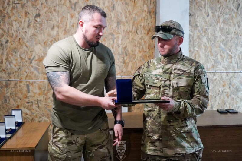 «За результатами успішних боїв з ворогом близько двадцяти азовців отримали президентські відзнаки «За оборону України», – йдеться в дописі.