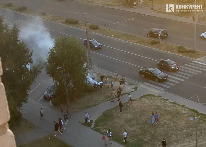 Після зіткнення авто почало одразу «диміти». На місці події наразі працюють рятувальники.