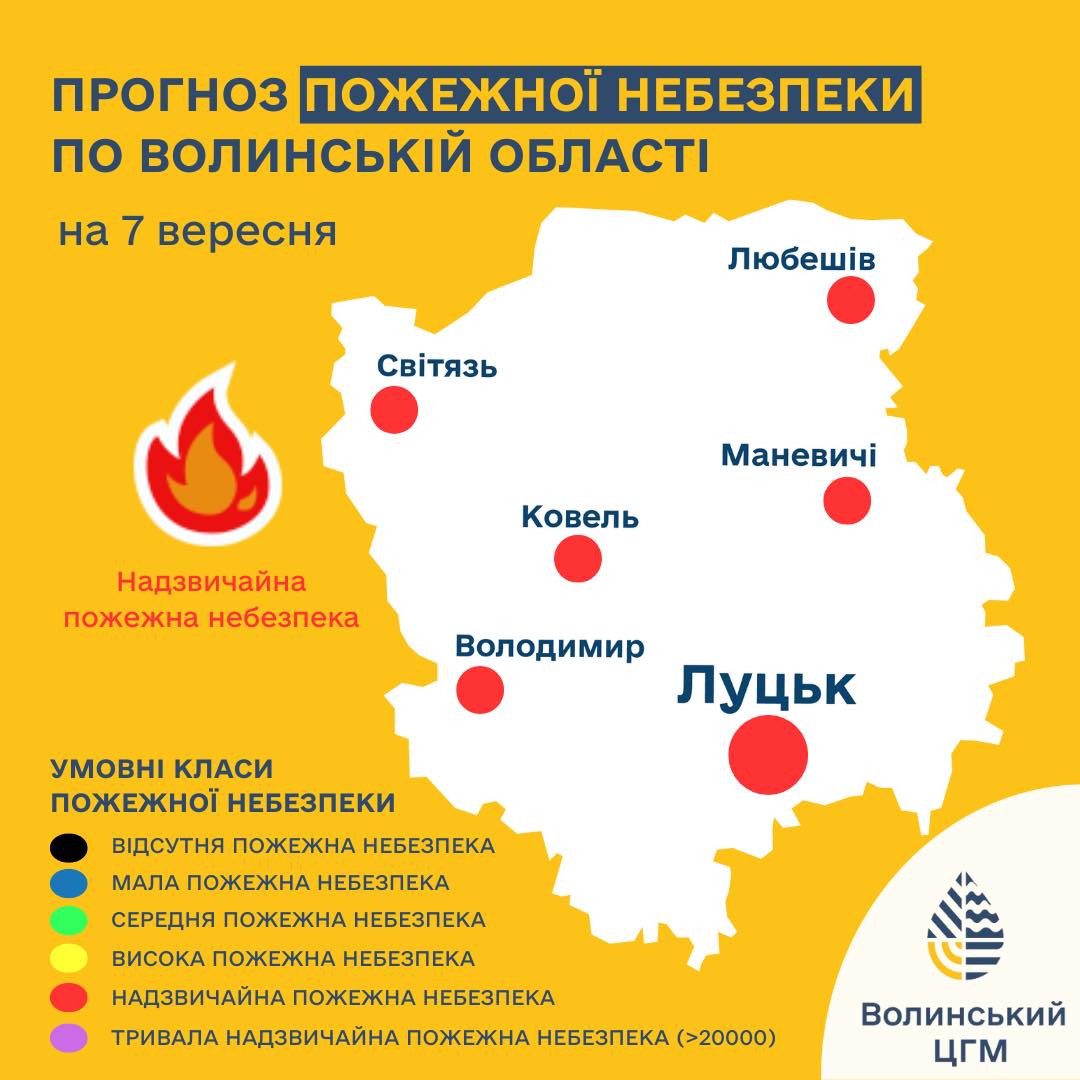 7 вересня на території Волинської області утримається надзвичайний рівень пожежної небезпеки.