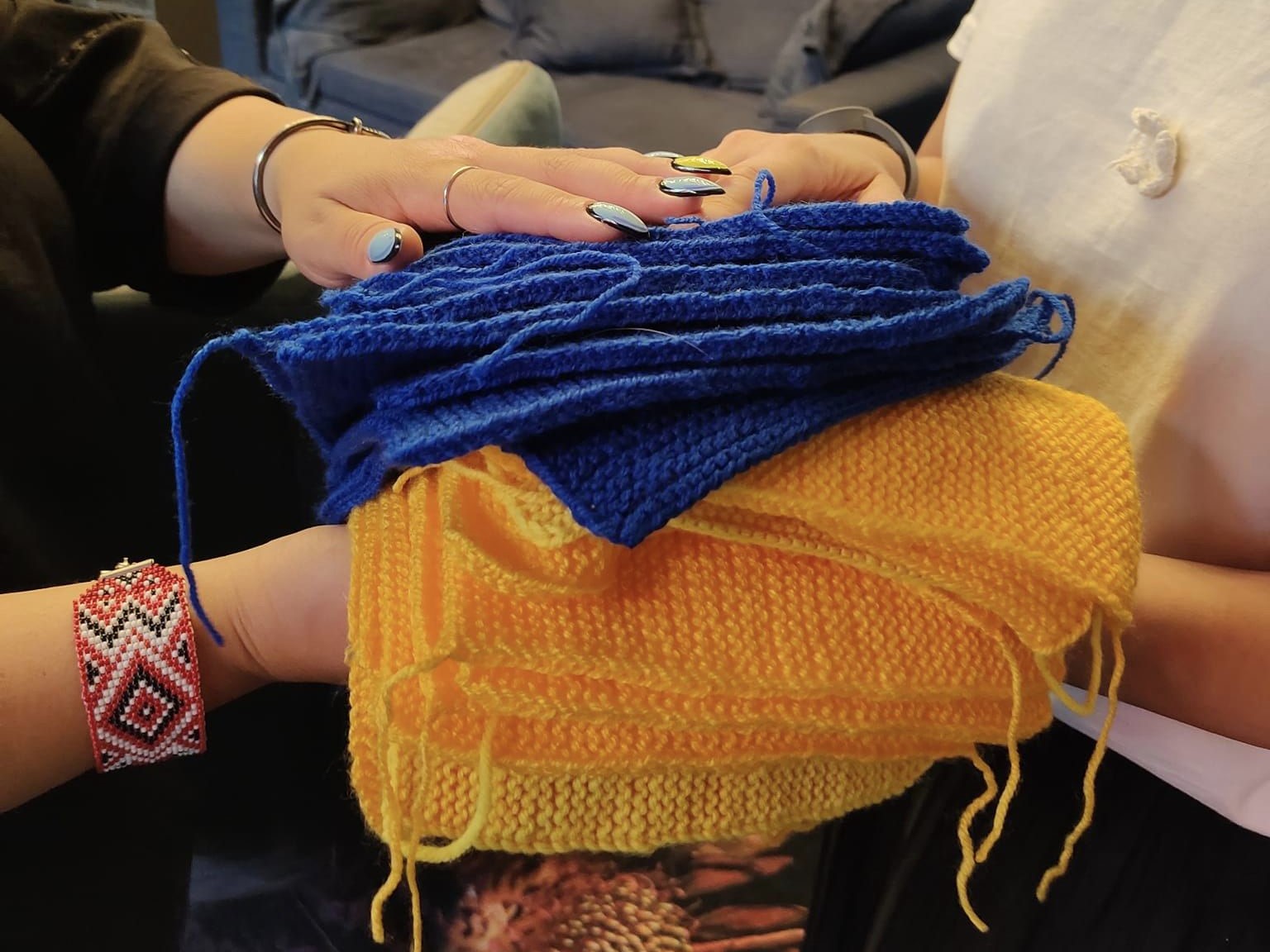 За бажанням необхідно було зв'язати шматочок майбутнього прапору синього або жовтого кольору, гачком або шпицями, розміром 20*20 см та передати цей шматочок організації.