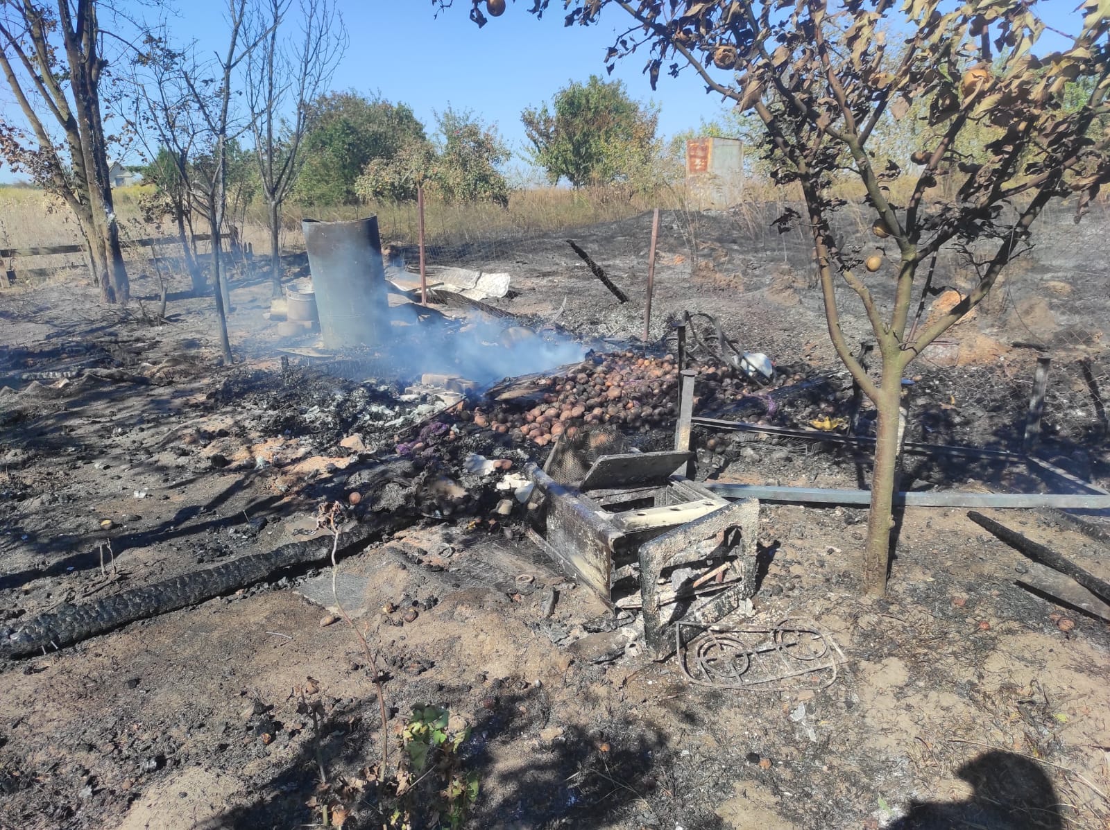 Внаслідок пожежі вогнем повністю знищено 2 дерев’яні будівлі, пошкоджений металевий контейнер та знищено речі домашнього вжитку, які були в контейнері.